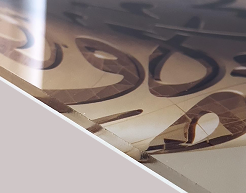 We use a thick (4,5 to 6cm depending on the size) clear acrylic window for a modern floating look on your wall.